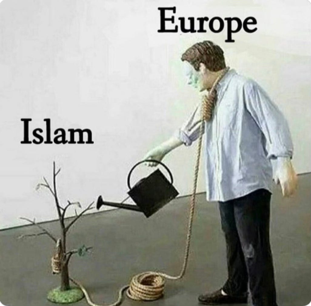 There is a mistake among these great memes. The rope between "Europe" and "Islam" is much shorter than the one pictured.