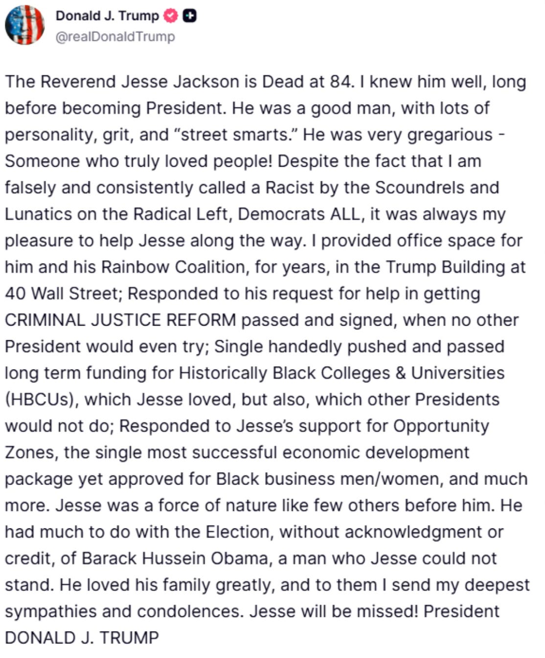 The Rev. Jessie Jackson, who passed away at 84 on Monday, was a “towering civil rights icon who battled alongside Martin Luther King Jr., negotiated global hostage releases, and shamed corporations for their lack of corporate diversity and failure to support voting rights.” And so on, but there’s more about him people should recall.