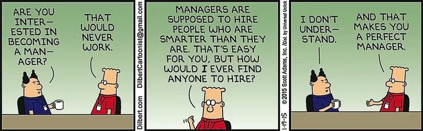 Likewise most large institutions have decided that a manager doesn’t need to know even the bare essentials of whatever work they appoint him to manage.