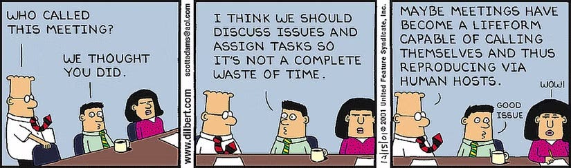 Although I have spent 95% of my working life either in blue-collar jobs where we didn't have "meetings", we just were presented with a stack of jobs to set by morning OR I was a free-lance standup comic, I laughed outloud at every Dilbert cartoon Max showed here. Can anyone doubt that the rancor and hatred he brought down on his head by saying a simple truth that that probably suppressed his immune system and at least contributed to his cancer? The Leftwing Hate Machine was at least complicit in killing him. And he was worth more than the whole lot of them. AG