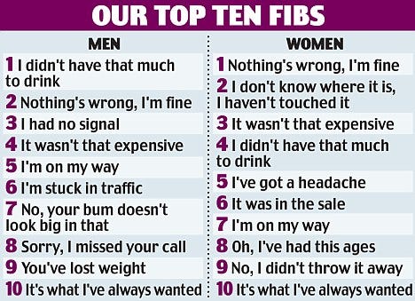 The question reminds me of the time the young woman cutting my hair—Karin—complained through the entire haircut about her lousy, lying, on-again off-again boyfriend. Then she asked me why so many men lie so much.