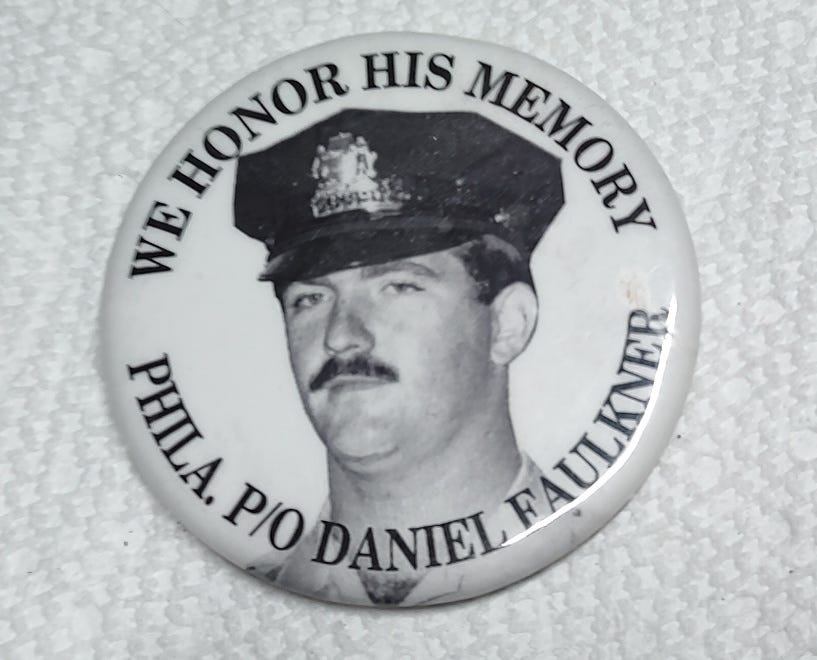 The outrageous murder and the loathsome pro-Mumia lies moved me to buy a Daniel Faulkner tee shirt and button. I wore out the tee shirt, but I still have the button.