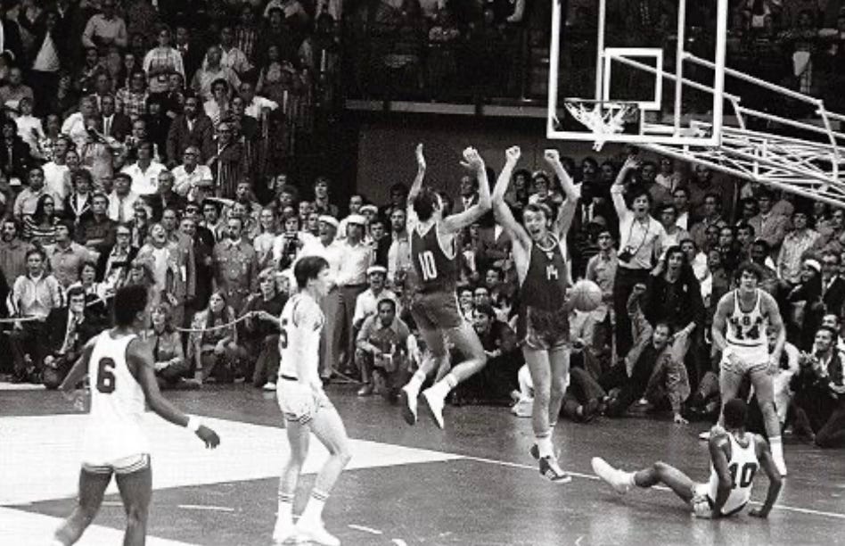 In the closing seconds with the USA behind 49-48, Illinois State’s Doug Collins picked off a Soviet pass and drove for a layup. Soviet player Zurab Sakandelidze rammed Collins into the basket stand, leaving the American motionless on the floor. After some tense moments Collins got up, stepped to the line, and sank both to put the USA ahead 50-49. Three seconds remained, and the Soviets failed to score. The buzzer sounded and the Americans celebrated their victory.