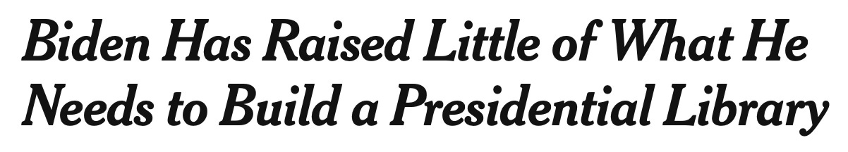 Former President Joseph R. Biden Jr. has raised only a small fraction of the money needed to construct a presidential library, leaving uncertainty about when a library might be built and its viability as a stand-alone project, according to public filings and interviews with his donors. . .