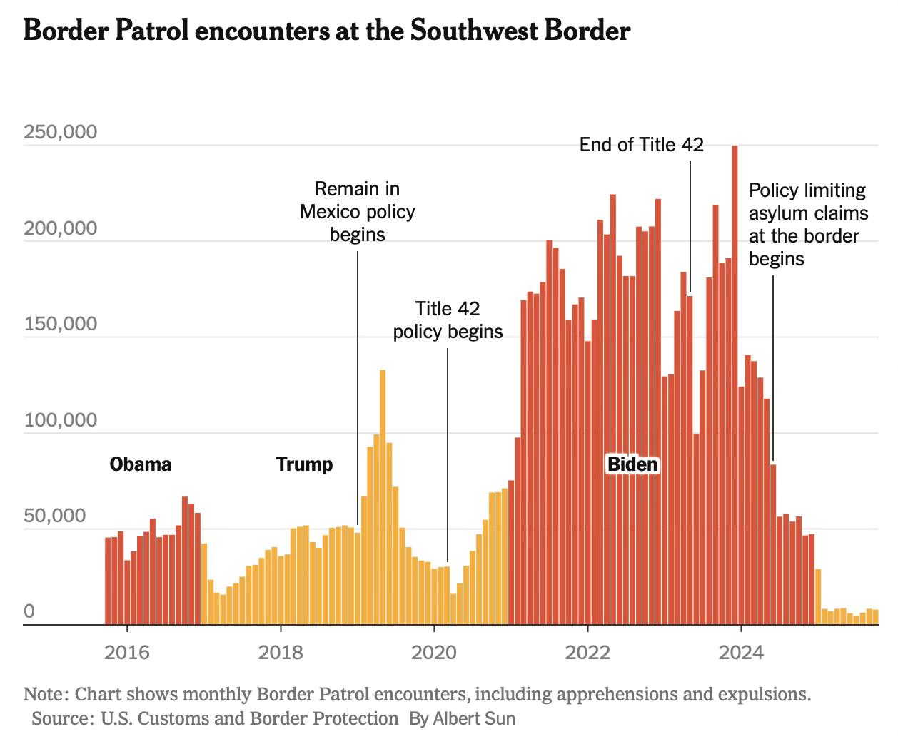 They offered a range of options to avert that crisis, by better deterring migrants. Mr. Biden seemed to grasp the risk. But he and his top aides failed to act on those recommendations. . . The warnings came true, and then some. . . First, they underestimated the scale of migration that was coming. Second, they failed to appreciate the political reaction to that migration.