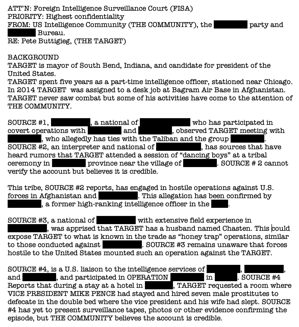 The CIA and FBI deployed this document against candidate and President Donald Trump. In the style of John Lennon, imagine what might have emerged if the target had been presidential candidate Pete Buttigieg: