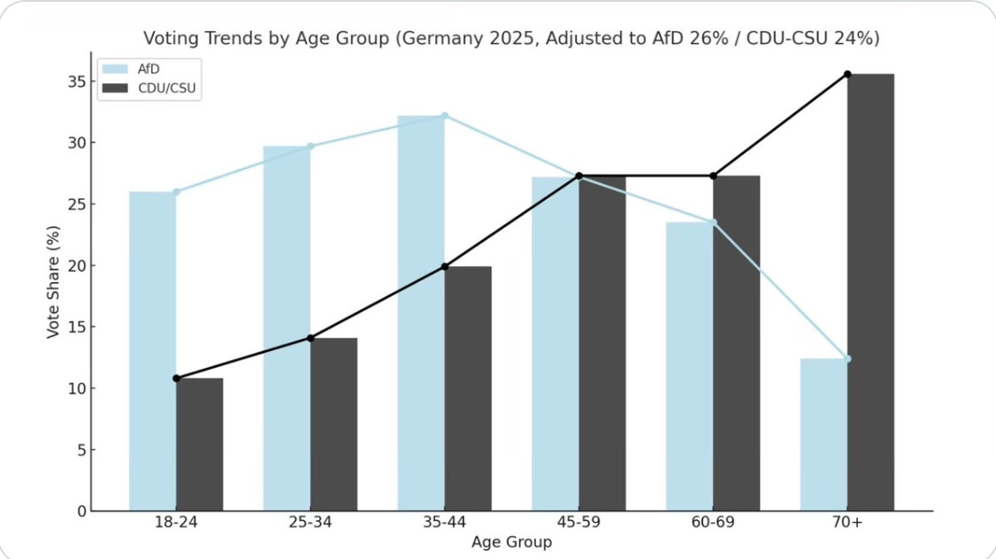 Incidentally, the AfD’s voting strength is lopsided toward younger voters, which means the future belongs to them: